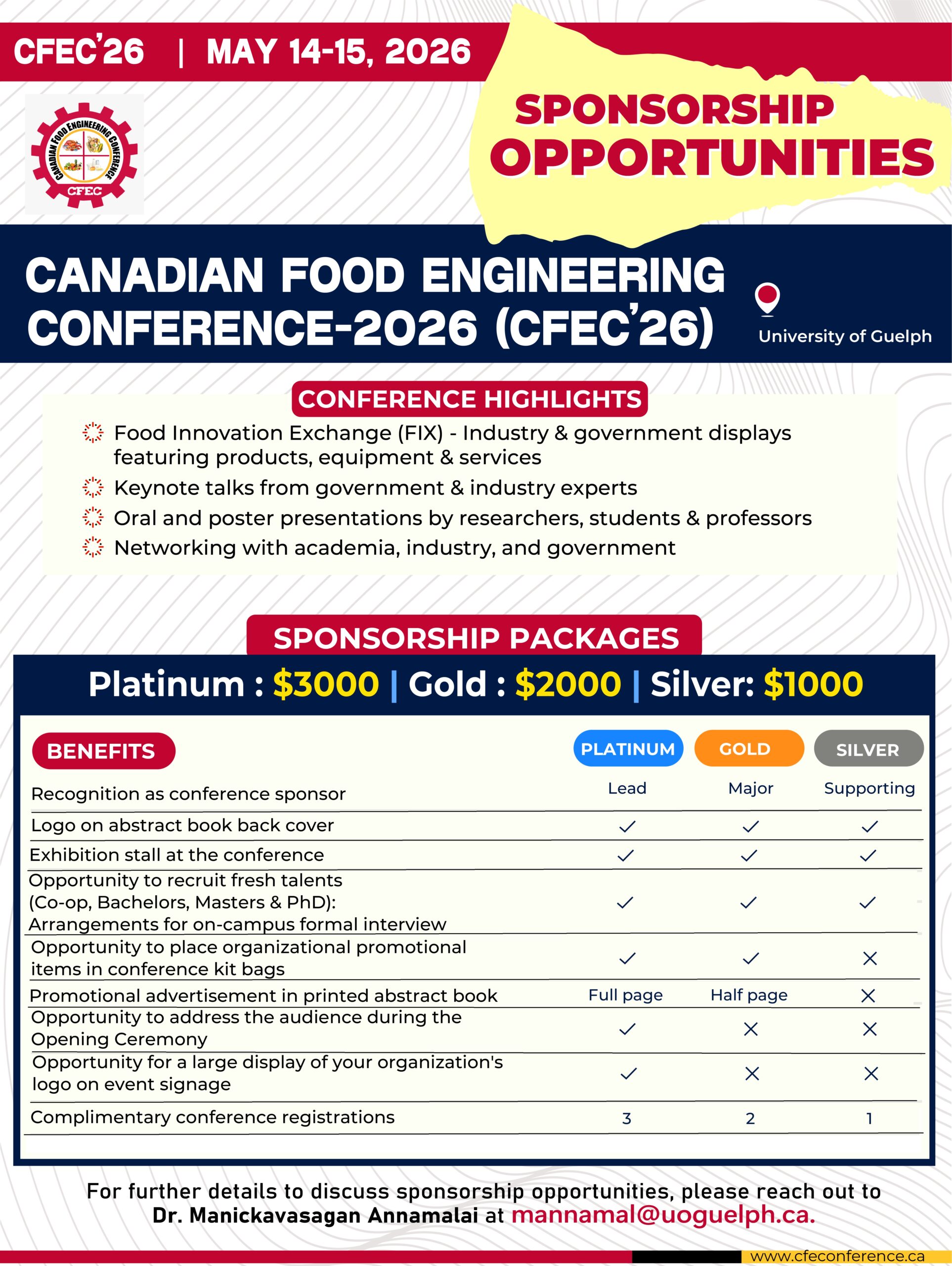 Sponsorship Oppurtunities Be Part of the CFEC'26! Don’t miss this incredible opportunity to collaborate, innovate, and inspire at CFEC 2026. Together, we can advance food science and engineering for a better tomorrow Join Us
